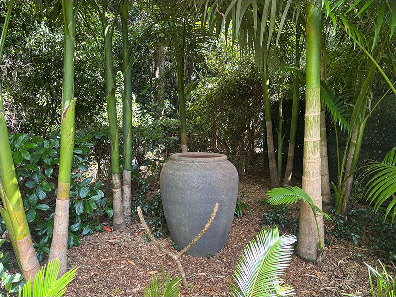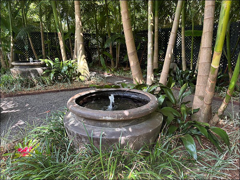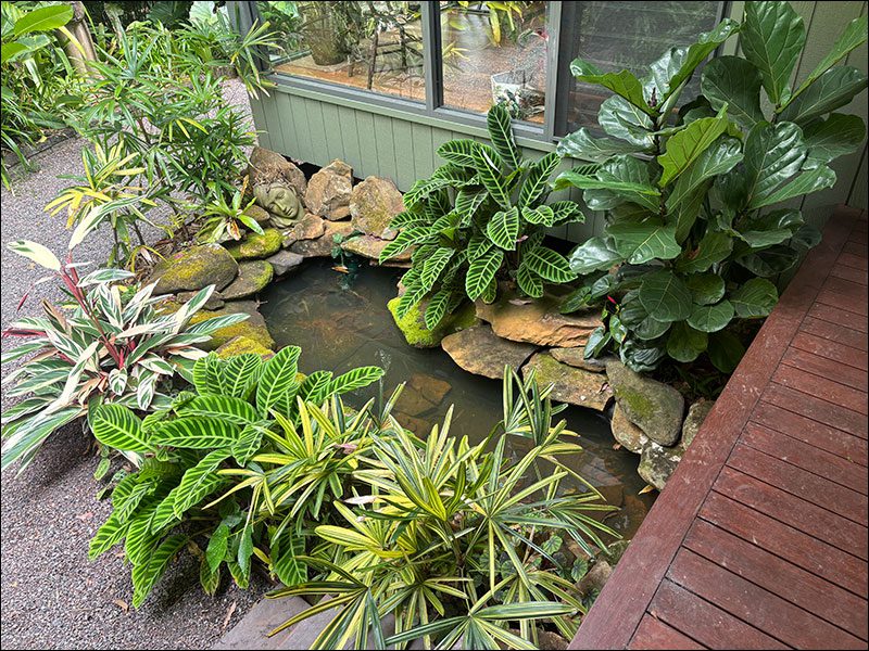 This garden has matured over the last few years along with the expansion of the house. Small ponds were placed to further enhance the tropical landscape between the two buildings.